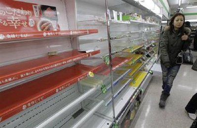 Aunque todavía para los adultos los niveles de yodo 131 presente en el agua potable no superan los límites recomendados para los adultos (300 becquerelios), la incertidumbre acerca de cómo serán los días venideros ha llevado a la población japonesa a agotar prácticamente el total de agua embotellada presente en el mercado. Es así como los pasillos de los supermercados japoneses – que hace unos días se mostraban suficientemente abastecidos – hoy lucen vacíos de botellas de agua. Mientras las últimas informaciones hablan de ciudadanos cargando por las calles de Tokio entre 20 a 30 botellas de ½ litro, las autoridades niponas estudian la posibilidad de importar agua embotellada durante los próximos días.