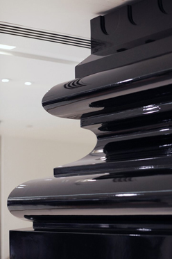 While in the vernacular postmodern surfaces or at least the recognition of a tradition to which reference or «quote» is one of its main features, surfaces as Viktor & Rolf stores, they seem to refuse membership to any tradition. The black finish and reflective of these areas not only nullifies the sutures or traces of its construction, but weaken any evidence of this in Classic trim the base of the spine. In an exercise like the white color of modern architecture, erase all track materials and processes that made possible its construction. Some surfaces like a latex suit, faithfully reflected the peculiarities of a specific body – in this case, the classic body of a column – to return an image «other» of this. Where are perverted the meanings commonly assigned to things, to create a new experience. An experience that leads us anywhere, to any history.