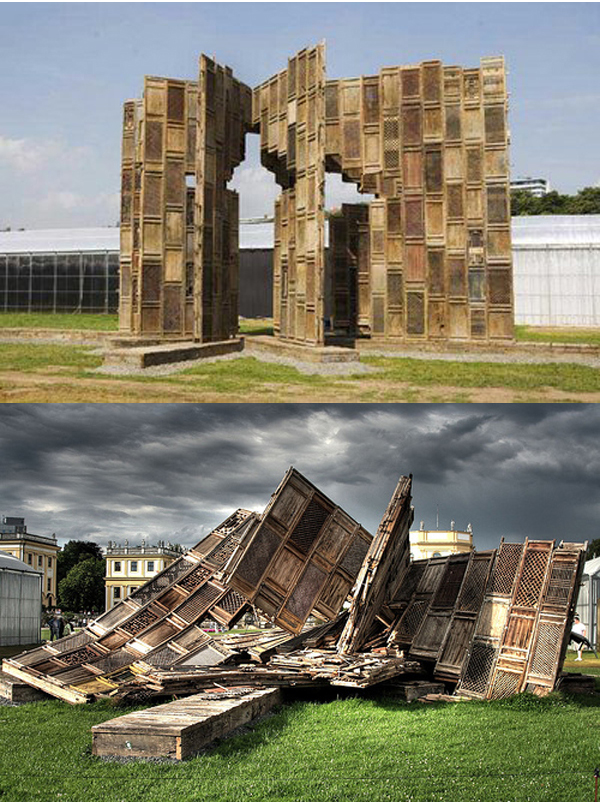 I remember in my visit to the Documenta XII, 2007, that the work of Ai lay crumbling. The artist refused to rebuild after its collapse, leaving it just a bunch of crooked timber in one of the gardens of the exhibition. Previously – the same year in Paris – at the inauguration of the monument dedicated to the solo exhibition of Anselm Kiefer, one of the towers also collapsed concrete panels when assembling. Kiefer as Ai Weiwei’s work exhibited left in ruins. Moreover, Ai Weiwei’s friends in China have risen the last few hours to the network, photographs showing the study’s own Ai Weiwei become a pile of rubble, demolished by the authorities in Shanghai.