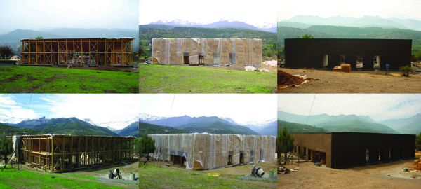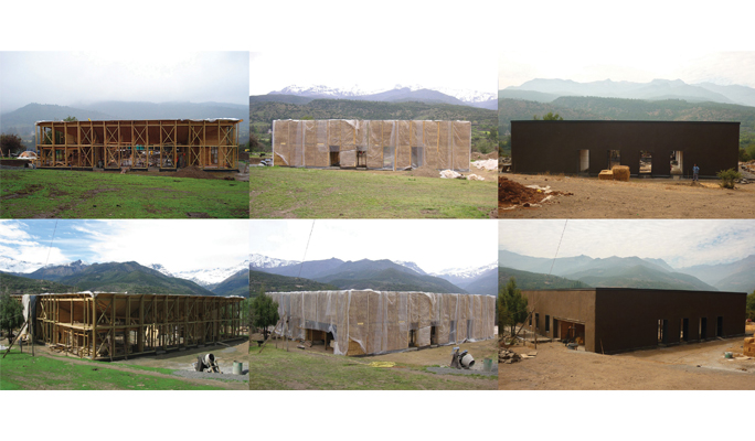 Es así como la estructura descansa en un entramado de madera impregnada, entre los cuales se disponen fardos de paja de trigo. Los cuáles no sólo sirven como material aislante natural, sino que como elemento de cohesión entre la carpintería y el revoco de barro. Haciendo del muro tradicional de adobe, un trabajo de precisión, de ensamblaje.
