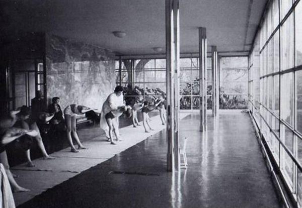 There is a photograph showing the interior of the Villa Tugenhat (Brno, 1929-30) in the middle of a workout. It’s an image – which for anyone familiar with minimally architecture of Mies van der Rohe – is disturbing. In the place where should be found to be, is a row of young children doing push-ups under the watchful direction of three adults. One of them – apparently a nurse – a girl attends to execute the exercise correctly, forcing the position back in action we guess painful. Young people are wearing shorts and no shoes. A thin towel is the only element of mediation between the cold stone specified by Mies and feet of children. On the other hand, adults who witness the class – one of which is sitting behind him support in the hard stone surface of the wall – are dressed so we can guess the cold that makes the interior of the Villa. It is an anomalous picture, because everything here is no requirement for the body. Physical demands of running exercises body in clothes too tight and inflexible. Requirement of bodies that are received by a hard and cold. Of bodies lined up as a colonnade, appear to duplicate the cruciform columns designed by Mies. In the presence of missing furniture, moving furniture and other associations that appear to generate abnormal, as the tiny chair at one of the columns. An abnormal image also an architecture for which the place to take the body is always that of a spectator who walk or find their place in a high element of mediation design, such as a chair or armchair Mies.