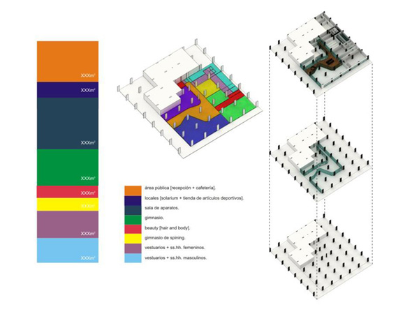 This body into another body, has its curved edges, thus differentiating this other body that houses it. No voiding or structural grid of the building, nor for the mall perimeter. Adapting – through the mediation device is receiving – in the manner of a track suit. In a year of full fitness.
