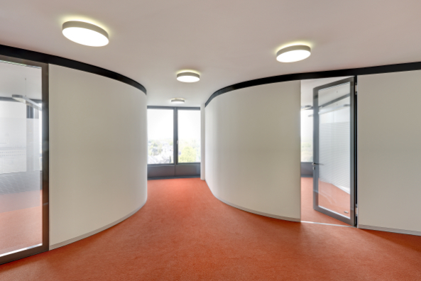 Permitir la apertura de una ventana en un edificio de oficinas – y la confianza depositada en ellas como principal medio de confort climático – es un hecho que pasa además por una revisión de la forma como se están pensando las plantas por el arquitecto. Mientras el aire acondicionado y el tubo fluorescente, posibilitaron el incremento de las superficies de los pisos de oficinas, la apertura de ventanas impone un límite a estos valores. Esto dado por el hecho de que una ventana no puede servir a una planta infinita. Y como ventilar y mirar van aparejado, uno podría afirmar que la adhesión por oficinas de “ventanas abiertas” juega a favor de la salud mental de sus ocupantes. Este escenario se percibe en la planta y vistas interiores de la KFW Westardake, en donde las oficinas se alinean a lo largo de un pasillo siguiendo la modulación dictada por la fachada. Ventana, escritorio y pasillo aparecen nuevamente como la secuencia de un espacio de trabajo, por sobre las plantas libres infinitas de la modernidad y post-modernidad.