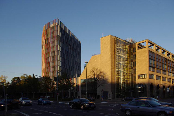 Emplazado en el amplio eje de la Zeppelinallee y colindante al parque Palmengarten, el edificio de la KFW Westardake, está constituido por una placa y una torre, la cual presenta una planta en la forma de una hoja, que una mantiene el plomo de la calle en una fracción de la longitud de la fachada, para posteriormente surgir como un volumen aislado. La importancia de las condiciones atmosféricas en la generación de esta forma, está dada por la orientación del sitio, así como por la presencia de vientos dominantes en invierno y verano con dirección sur-oeste. Estos últimos son los principales configuradores de una planta, que localiza por una parte las presiones negativas y positivas de la fachada en los “vértices” de la planta, a la vez que organiza la presurización de la fachada, así como la circulación del aire al interior de la fachada con tal de controlar las ganancias producto del sol.